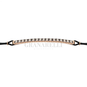 Bracciale barretta in oro rosa 18 carati e diamanti brown, punte brunite su cordino nautico nero rifinito con elementi in oro rosa.