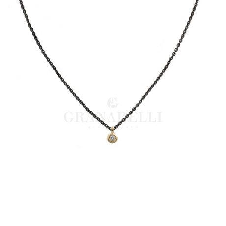 Ketting met diamant 0,03kt stalen ketting gele gouden ring