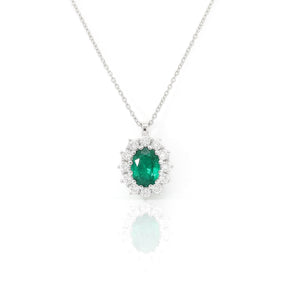 Collana in Oro Bianco con Smeraldo 1,13kt e Diamanti