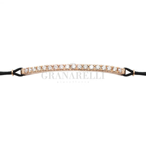 Bracciale barretta in oro rosa 18 carati e diamanti bianchi, su cordino nautico nero rifinito con elementi in oro rosa.