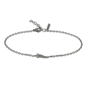 Realizzato interamente a mano nei nostri laboratori in Italia, questo gioiello è un simbolo di stile e raffinatezza.Il bracciale è composto da una delicata catena in titanio, leggera e resistente, mentre il protagonista indiscusso è il piccolo cornetto impreziosito da tre diamanti brown (0,04 ct totali). La firma del brand Mano|J, un diamante nero da un punto incastonato sulla targhetta pendente, è garanzia di autenticità e qualità.