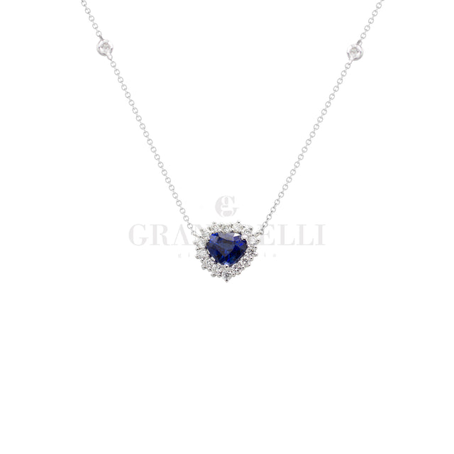 Girocollo Zaffiro taglio Cuore 0,80kt con diamanti in Oro Bianco