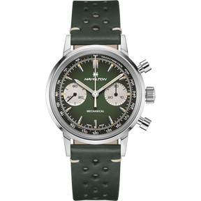 L’American Classic Chronograph 40 mm in verde intenso interpreta in chiave contemporanea l’estetica delle corse automobilistiche vintage. La finitura fumé aggiunge profondità alla tonalità intensa del quadrante, mentre il cinturino traforato rende omaggio al design classico del motorsport. Corredato da un secondo versatile bracciale in maglia fornito nella confezione, questo cronografo automatico unisce lo spirito pionieristico di Hamilton a un look pronto per la corsia di sorpasso.