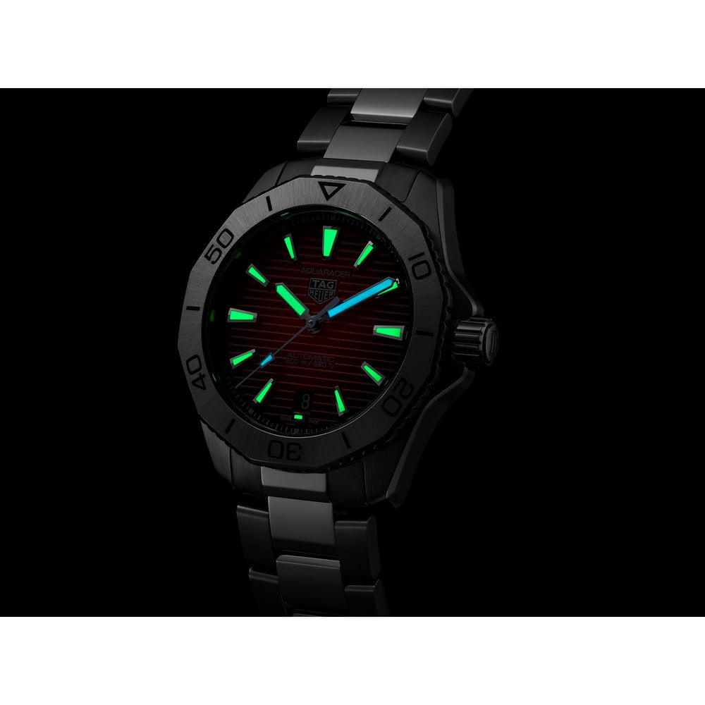Tanto versatile quanto elegante, il TAG Heuer Aquaracer infonderà al tuo look una dose di adrenalina. Combinazione di un vistoso quadrante rosso rubino che trasmette i colori vivaci dell'autunno con una funzionale cassa da 40 mm e un bracciale in acciaio, è pensato per andare sempre più lontano, con il massimo stile.